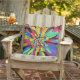 Een levendige abstracte bloem in tinten blauw, paars, rood, koraal, geel, goud, groen en meer!