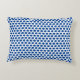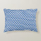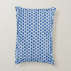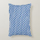 Het afbeelding is voorzien van een rechthoekig kussen met een blauw en wit patroon dat opvalt door zijn hoge contrastverhouding en repetitief ontwerp. Dit patroon geeft het kussen een moderne en stijlvolle uitstraling, waardoor het een veelzijdig accessoire is dat verschillende decorstijlen kan aanvullen.