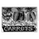 Élégante et complexe gravure vintage du 19ème siècle de 4 variétés de carottes différentes, avec les différents types de carottes suspendues dans des bouquets de crochets sur un mur surmonté. Les noms des variétés sont listés sous chaque groupe : Forçage français, Oxheart, Scarlet Horn, Chantenay. Nettoyé pour décorer n'importe quel objet de façon élégante et moderne. Ajoutez votre propre texte à cette jolie photo végétale si vous voulez ou simplement profiter de l'art victorien noir et blanc détaillé.