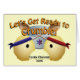 Pas deze kaart aan voor je cookie-gebeurtenis. Het ontwerp is voorzien van een paar grappige, fel uitziende koekjeskarakters die voor een mixende kom en gekruiste houten lepels onder een gebogen tekst afbeelding lezen "Laten we klaar zijn om te ruiken!"