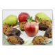 De herfst wordt in chocolade met vrucht gedompeld. Pumpkin chocolade koekjes Herfst die half is gekleurd in chocolade omringd door appels, peren, bladeren, pijnappels. Dit maakt een mooi herfst- of herfst feestbord geweldig voor rond Halloween of Thanksgiving. pumpkin_cookies_fruit_bladeren_OPJ300