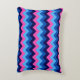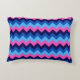 Un coussin avec accent avec un joli design motif coloré de chevrons bleus et roses.
