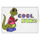 Un dinosaure cool, habillé de vêtements de hanche et de lunettes de soleil, est parfait pour les petits garçons qui aiment les dinosaures. Le mot Cool Dino est écrit dans une police grasse et colorée avec pois.
