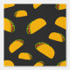 Cool en leuk lekker taco patroon donkergrijs behang. Cool en leuk taco patroon op aangepaste achtergrond. Lekkere vectorillustratie gemaakt met toasty tortilla met vlees, salade, tomaten en kool.