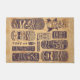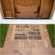 Tiki (een groot Polynesisch houtsnijwerk in humanoïde vorm) Graphic Illustration Set staat op deze deurmat.