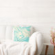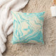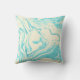 Een stijlvol en gesofisticeerd kussen met een elegant faux marmer patroon met draaiende kleuren in turkooisblauw en roomkleuren.