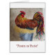 Original sur la grande tuile d'ardoise. Les plumes de Blilliant drapent avec élégance au-dessus du coq de seau se repose dessus, sur le lit de la paille.