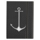 Un chrome nautique d'argent de style aiment l'ancre sur un décor texturisé noir. Un cadeau nautique moderne sure pour faire une impression dessus, ou outre du bateau.