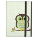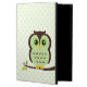 La caisse folio faite sur commande élégante pour des ipads comporte une illustration douce de vecteur d'un hibou été perché sur une branche d'arbre sur un arrière - plan de motif de pois.