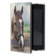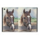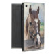 Un cheval brun avec un filet blanc sur son visage se tient dans le pré sur cas d'iPad d'iCase de Powis de cet amoureux des animaux coloré le mini avec le kickstand. Customisez-le avec votre propre légende.
