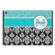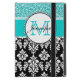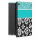 Coque iPad Mini Girly, turquoise, damassé noire de parties