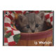 Brun adorable de type quand il était un chaton ! Jetant un coup d'oeil hors d'un panier couvert de serviette de cuisine, il jette un coup d'oeil sur vous, laissant chacun le connaissent "werkin d'iz"