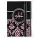 Personnalisé Girly Black and Pink Damask avec effet parties scintillant IMPRITED et votre monogramme et votre nom avec couleur accent rose. Customisez avec votre nom et votre monogramme. Damask Gallery© Autres couleurs et styles disponibles dans notre boutique à www.zazzle.com/DamaskGallery*