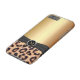 Cas moderne de l'iPhone 6 de monogramme d'or de bague à diamant de ruban de noir d'empreinte de léopard.