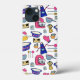Coque iphone design des ustensiles de cuisine lumineux. Parfait pour les cuisiniers, les pâtissiers, les chefs. De l'oeuvre originale. Motifs bleus, roses et jaunes sur un arrière - plan blanc.