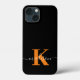 Monogramme noir et orange moderne iPhone 13 Mini Coque
