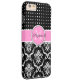 Coques Case-Mate iPhone Noir rose et blanc Damas & Motif PolkaDot