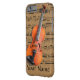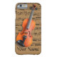 Un cas fait sur commande de téléphone pour le violoniste ou le mélomane, il montre une belle image photographique d'un violon sur un arrière - plan brun clair avec les notes musicales imprimées là-dessus pour un regard vintage de musique de feuille. Un secteur de modèle est inclus pour votre nom ou texte personnalisé.