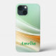 Orange Green Abstrait Wave iPhone 13 Mini Coque! Ce coque dynamique et élégant est parfait pour exprimer votre personnalité et ajouter une pop de couleur à votre tenue. Le design des vagues est à la fois attrayant et unique, et les couleurs orange et verte vont certainement tourner les têtes.