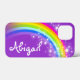 Joli arc-en-ciel avec le ciel violet design filles coque iphone. Personnalisez avec votre propre nom d'enfant, parfait pour l'identification facile de l'appareil. Cet exemple est actuellement lu par Abigail. Conçu et illustré par Sarah Trett. www.mylittleeden.com