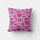 Coquette en grillig kussen met handgetekende illustratie van magenta bogen en harten.