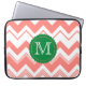 Coral White Monogram Chevron Pattern Laptop Sleeve
