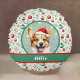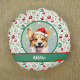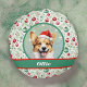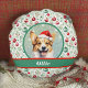 Dit ontwerp is voorzien van charmante kunstwerken van een Welsh corgi, die een waterverf uitstraling heeft. Het is ingesteld tegen een sprankelende wijze groene en sprankelende lichten achtergrond, en dan omzoomd in een donkergroen met een rood en groen kerstversiering patroon. De naam van je hond of die van je ontvanger staat in het wit op een groene en rode banner. Typ de gewenste naam van de hond in het gedeelte Personaliseren.