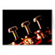 Kaart met geposterized zilveren cornet kleppen tegen een donkere achtergrond.