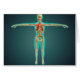 Corps humain montrant le système squelettique, les artères, les veines et le système nerveux.