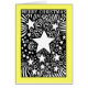 Une carte de Noël avec un dessin stylisé noir et blanc d'un cosmos avec étoiles, galaxies, planètes dans le flux maelstrom de la gravité et le continuum du temps spatial. Cette version incorpore les mots "Joyeux Noël" et a une bordure de 0,5 pouce (La couleur de la bordure peut être customisée). "Joyeux Noël et Bonne Année" écrit dans une police de script (Le message à l'intérieur peut être customisé).