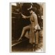 Ce portrait vintage montre une suffragette de Chicago se tenant sur des rues de pavé rond avec un pied sur le panneau courant de sa voiture. L'équipement de marche se compose des bottes gîtées par haute, du pantalon sous la jupe ouvert-avant, de la veste courte et du large casquette débordé. (Des 1916) photos du 20ème siècle originale par des nouvelles de Bain. Tous droits réservés art 2012 d'aumônier de ©