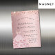 Un aimant d'invitation moderne, élégant et glamour pour une Quinceañera, 15ème anniversaire. Un arrière - plan rose vif avec une fausse parties scintillant rose en or et une robe de bal rose. Le nom est écrit avec un script de style moderne écrit à la main. Personnalisez et ajoutez les détails de votre fête