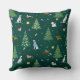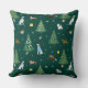 Een schattig kussen met speelse teckels, Dalmatiërs en Westies omringd door sneeuwvlokken, versierde sparren en feestelijke cadeaus. Het winterse ontwerp, tegen een groene achtergrond, brengt een vrolijke kerstsfeer naar elke ruimte.