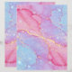 Een dromerig abstract alcoholinktontwerp met golvende golven van roze, paarse en blauwe tinten met delicate gouden aders en verspreide bubbels. Deze etherische kunst roept het zachte, speelse gevoel van wattenwolken en magische luchten op, perfect om een vleugje wonder toe te voegen.