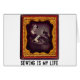 Véritable photo d'une femme victorienne qui travaille dur sur sa machine à coudre "de pointe", avec un logo personnalisé amusant : Coudre c'est ma vie !