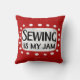 "Sewing Is My Jam" est un design de texte amusant avec une forme d'accent blanc entourée de points blancs texturés.