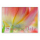 "Colours of Spring Tulip" Sauvegardez la carte Date. Cette carte de dattes, lumineuse et joyeuse, est un moyen amusant et festif de parler de votre mariage à vos amis et à votre famille. Taille disponible : 7" x 5" (Carte de voeux) ou 5,6" x 4" (Carte de notes). La gamme de produits "Colours of Spring Tulip" comprend des cartes de date, des timbres-poste américains, des magnets mariages et des autocollants, des cartes de remerciement et des cartes RSVP.