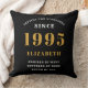 Un design personnalisé classique de lancer oreiller pour cette célébration d'anniversaire pour une personne spéciale née en 1995. Ajoutez le nom à ce design vintage de style rétro noir, blanc et or pour un cadeau d'anniversaire personnalisé. Modifiez facilement le nom et l'année avec le modèle fourni. Un merveilleux cadeau d'anniversaire personnalisé. Plus de cadeaux et de fournitures de fête pour cette fête disponibles dans le magasin.