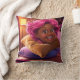 Adorable coussin 3D avec une fille stylisée avec une peau brune chaude et des cheveux roses vibrants, capturé dans un sourire joyeux sous un bon éclairage. Un accent décoratif unique et charmant.