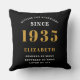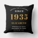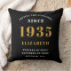 Un design personnalisé classique de lancer oreiller pour cette célébration d'anniversaire pour une personne spéciale née en 1935. Ajoutez le nom à ce design vintage de style rétro noir, blanc et or pour un cadeau d'anniversaire personnalisé. Modifiez facilement le nom et l'année avec le modèle fourni. Un merveilleux cadeau d'anniversaire personnalisé. Plus de cadeaux et de fournitures de fête pour cette fête disponibles dans le magasin.