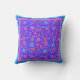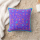 Un joli coussin à jets fleuris ou épars, avec un motif de fleurs vives en violet, turquoise, rose et orange sur un arrière - plan bleu royal d'un collage de papier peint à la main par Judy Adamson. Vous pouvez facilement modifier la couleur de l'arrière - plan à l'aide du bouton Modifier.