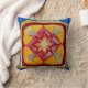 Belle Coussin à Throw avec design mandala peint à la main - paix et unité - motif de fleurs au milieu - 4 personnes autour - art abstrait - rouge, jaune, rose, argent.Pour tous les amateurs de yoga, méditation, et spiritueux libres.Belle décoration maison.