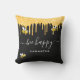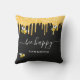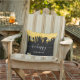 Décoré d'abeilles souriantes et joyeuses. Un arrière - plan noir chic. Décoré avec des gouttes de parties scintillant en faux or. Script en lettres blanches avec swashes et texte : Bee Happy. Personnalisez et ajoutez votre nom. Parfait pour la vie en plein air estivale, dans votre jardin ou au bord de la piscine.