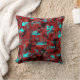 Coussin rouge et turquoise d'art abstrait.