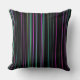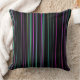 Un design abstrait composé de fines lignes verticales magenta, violet, vert et bleu sur un arrière - plan noir.