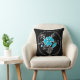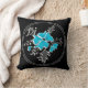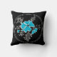 Coussin Abstrait bleu moderne fleur gris noir feuille prin