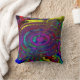 Abstrait hypnotique psychédélique de couleurs Jetez l'oreiller. Oeuvre en bleu vif, vert, orange, violet et jaune, tourbillonné dans un design super pour donner à cette personne spéciale ou vous-même.