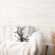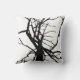 Cet oreiller contemporain présente un motif abstrait artistique, noir et blanc du sommet d'un tulipe en hiver avec des branches nues en silhouette.