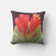 L'image sur cet oreiller à jets est une photo originale de ZoeSPEAK d'un plante agave fleurissant dans le jardin. Le soleil couchant illumine les pétales rouges vermillon des fleurs bientôt ouvertes, leur donnant une lueur jaune chaude contre l'arrière - plan sombre. Les feuilles en forme de disque de l'agave entourent les fleurs de leur couleur vert bleuâtre doux.