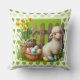 Un agneau de Pâques avec un panier d'œufs sur un coussin vert avec des cœurs verts pour votre décoration de Pâques
